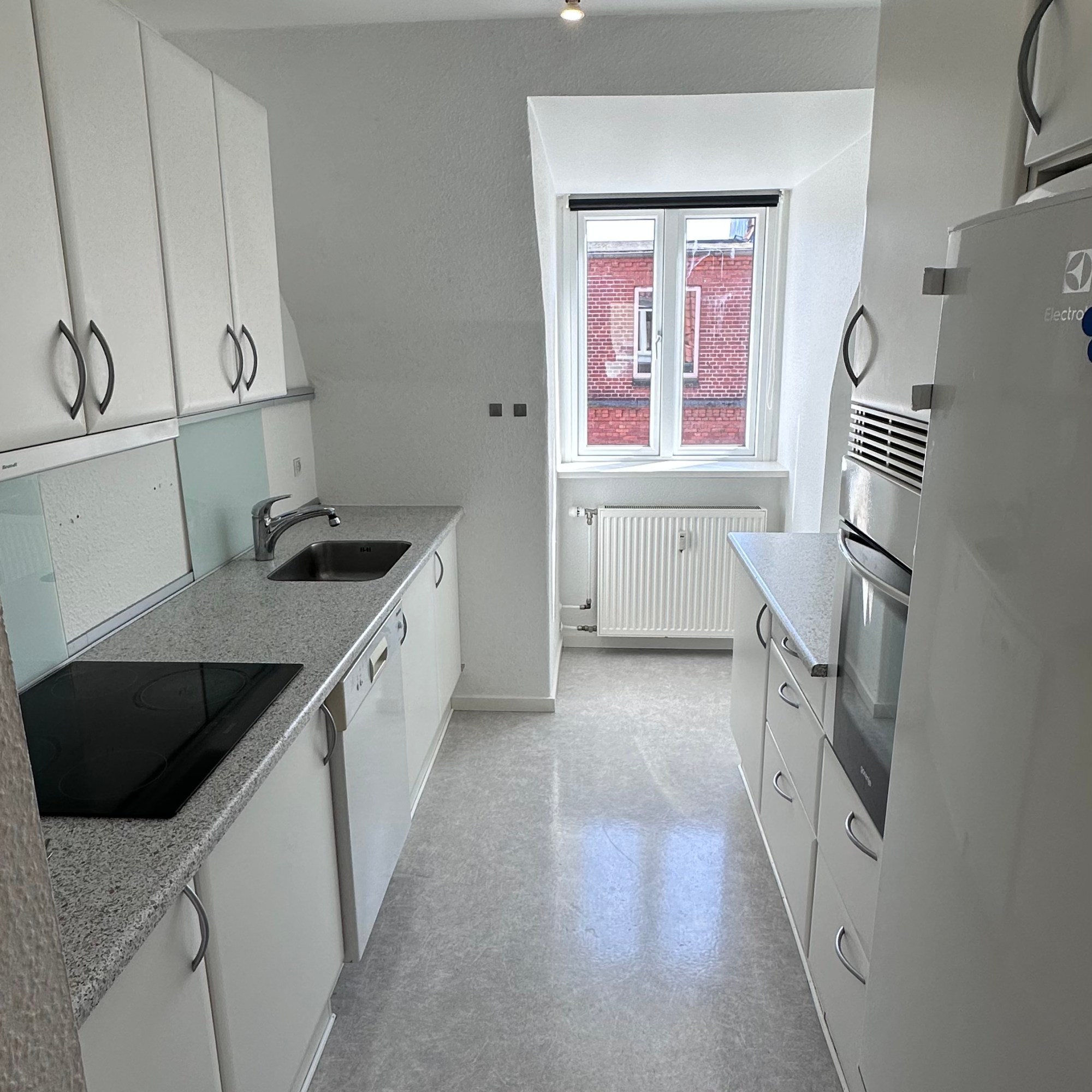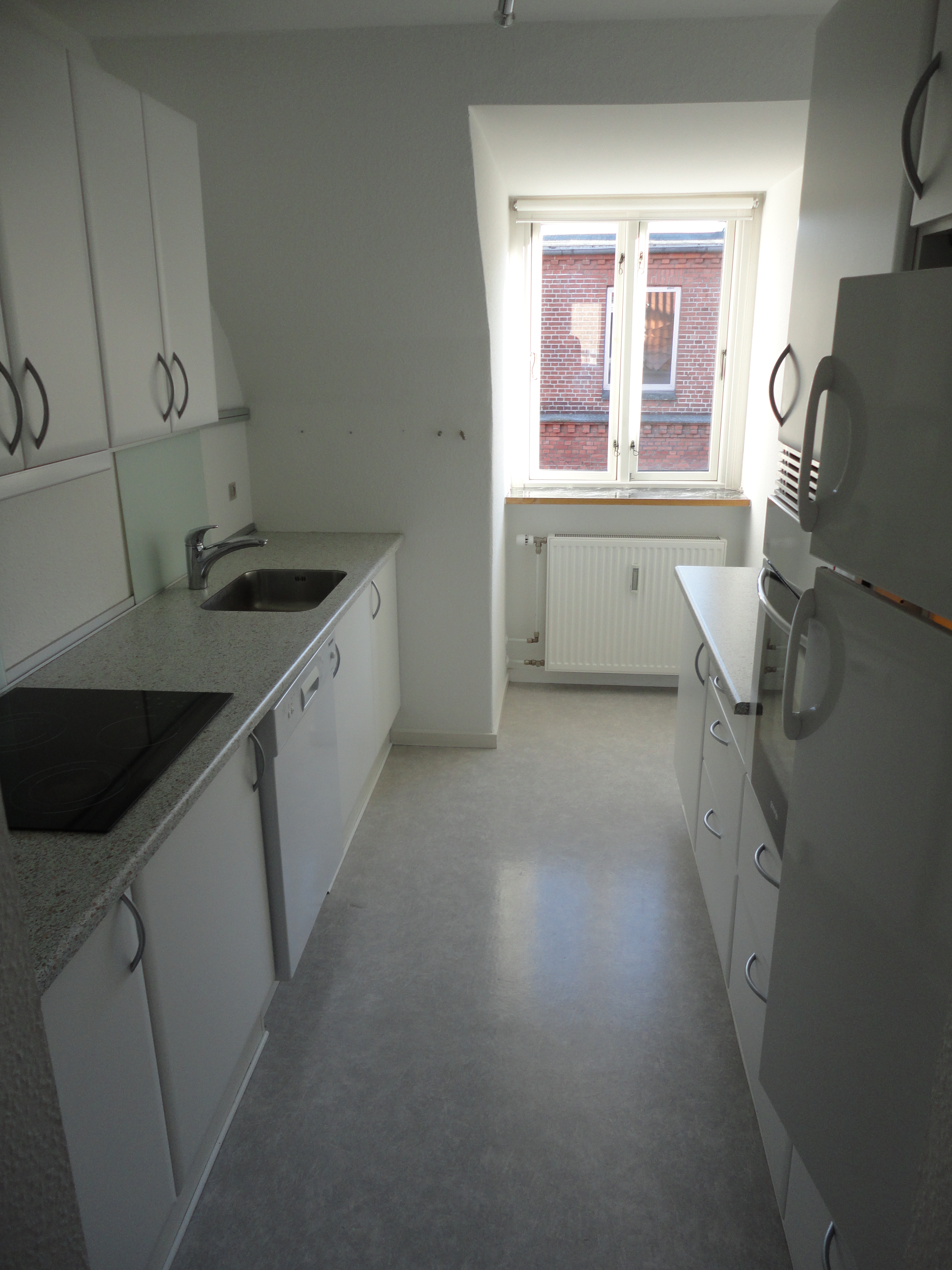 Istandsat. 2 værelser + stue. Køkken med opvaskemaskine, komfur, køle/fryse skab.